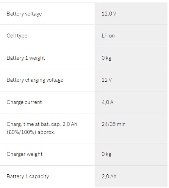 - Charge time at battery cap 2.0Ah (80%/100%) approximate: 24/35min
