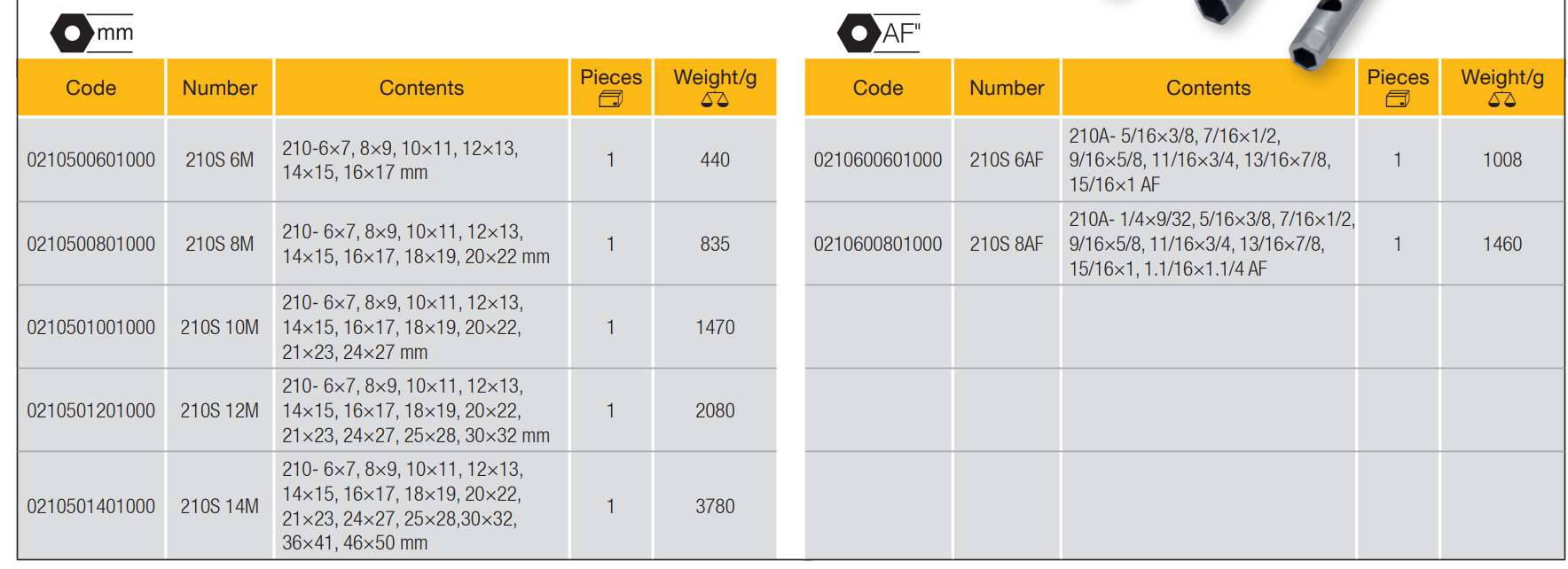 (ELORA 210S M/AF) Hexagon Tubular Box Spanner Set