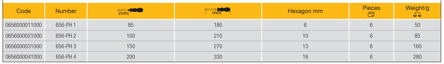 (ELORA 656 PH) Screwdriver, Cross Slotted Screws